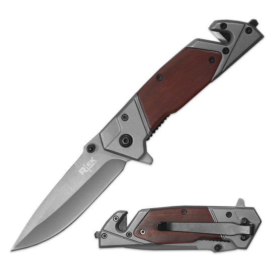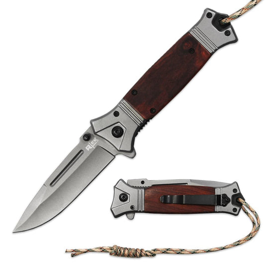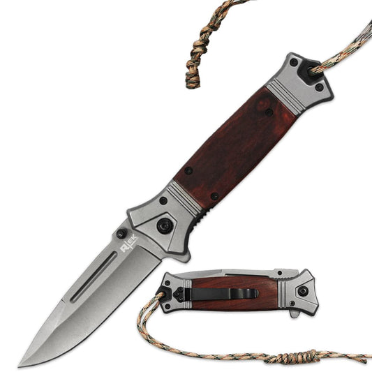 RT 2856-WD 6" Jumbo Spanish Wood Handle Assist Open Folding Knife with Paracord