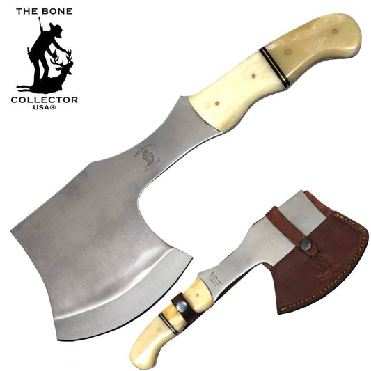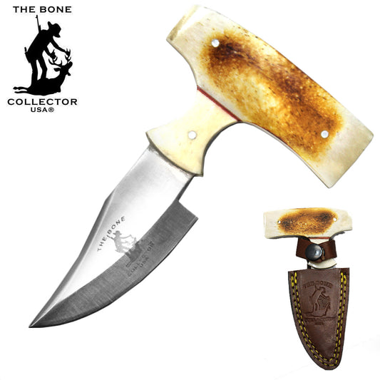 BC 816 5" Bone Collector 2 Blade Bone Handle Folding Knife with Leather Knife