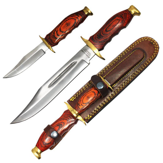 DC 2011-15LRH 13" Dark Wood Handle Commando Knife with Leather Sheath