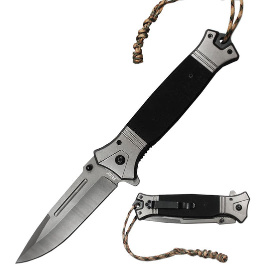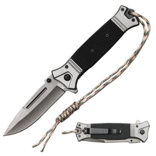RT 2856-BK 6" Jumbo Black G-10 Handle Assist Open Folding Knife with Paracord