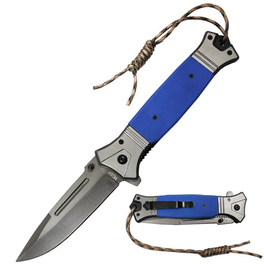 MB 4544-BL 5.5" Double Blade Blue Bat Pocket Folding Assist-Open with Belt Clip
