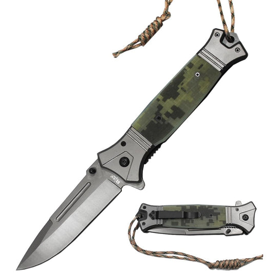 RT 2856-CA 6" Jumbo Camo G-10 Handle Assist Open Folding Knife with Paracord