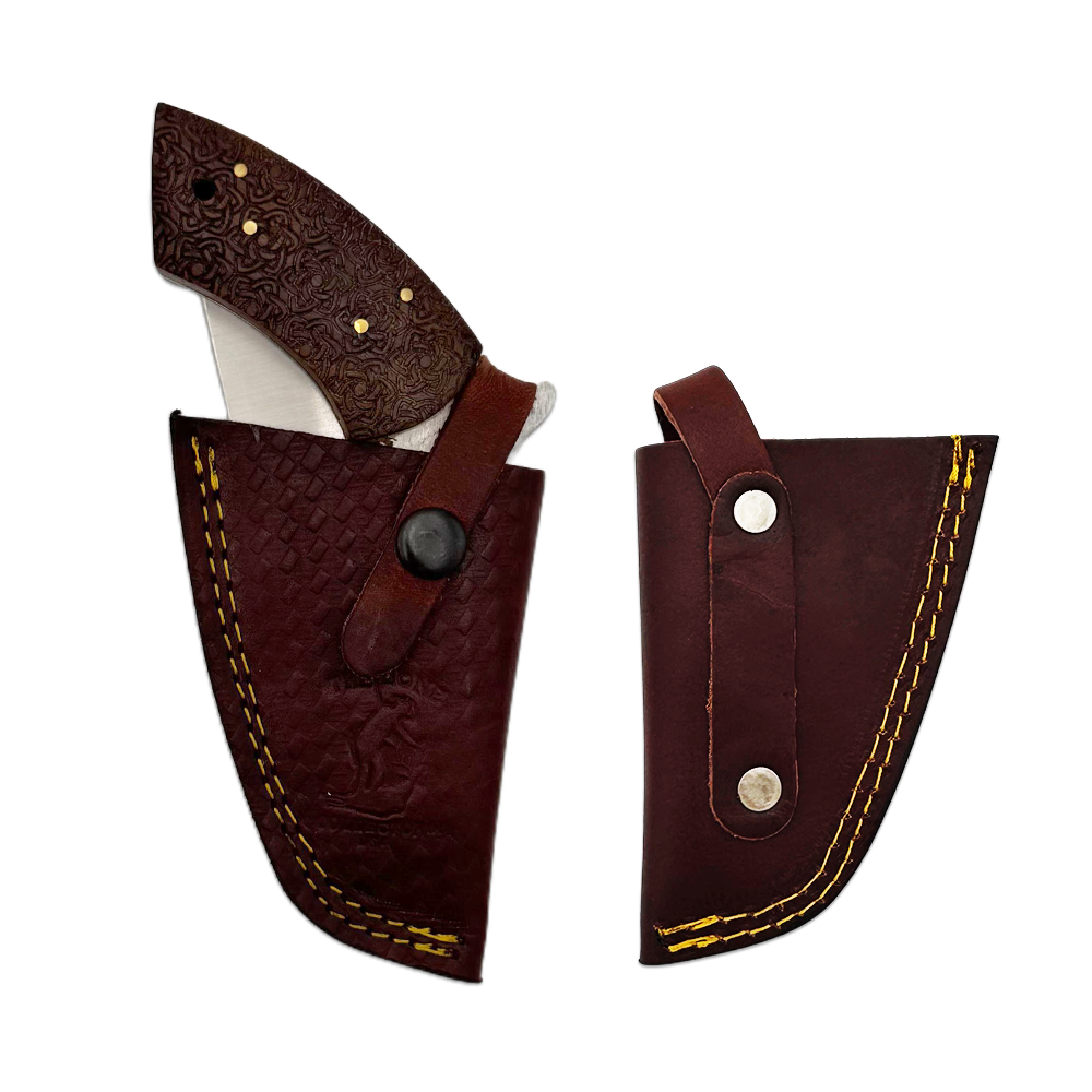 The Bone Collector Gun-Handle Folding Knife features a 3.75-inch stainless steel blade and a 6-inch metal and Rosewood handle, with a total overall size of 10 inches when the blade is extended. It includes an easy lockback release located on the "hammer" for added convenience. The knife comes with a genuine leather sheath, ensuring safety and comfort while providing quick access when carried, making it an essential companion for any outdoor enthusiast. Designed in the USA and handmade in Pakistan, this knife is crafted with the highest quality materials, showcasing years of industry experience and innovation from the Bone Collector brand.