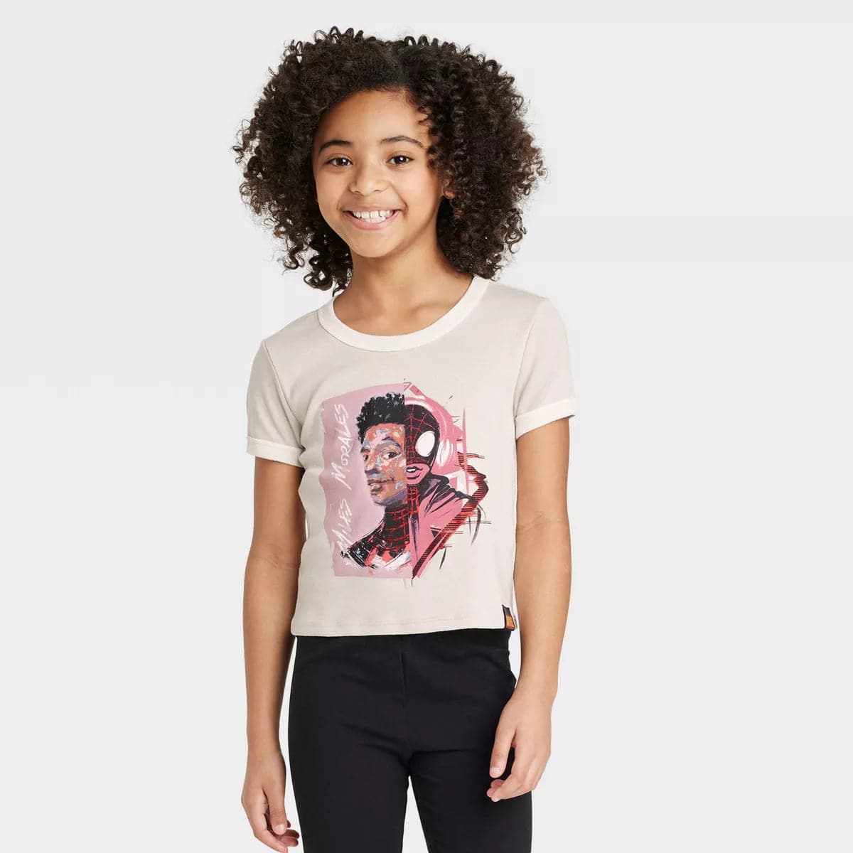 Your artistic child will love taking on their day in impressive style in this Marvel Spider-Man: Miles Morales x Nikolas Smith Cropped Top. Tailored in a standard fit, this short-sleeve top is crafted from a soft jersey fabric for all-day cool comfort. Designed in a classic crewneck style with a cropped length hitting the waist, it features a Nikolas Smith Miles Morales illustration, making it just the right pick for your Marvel fan.