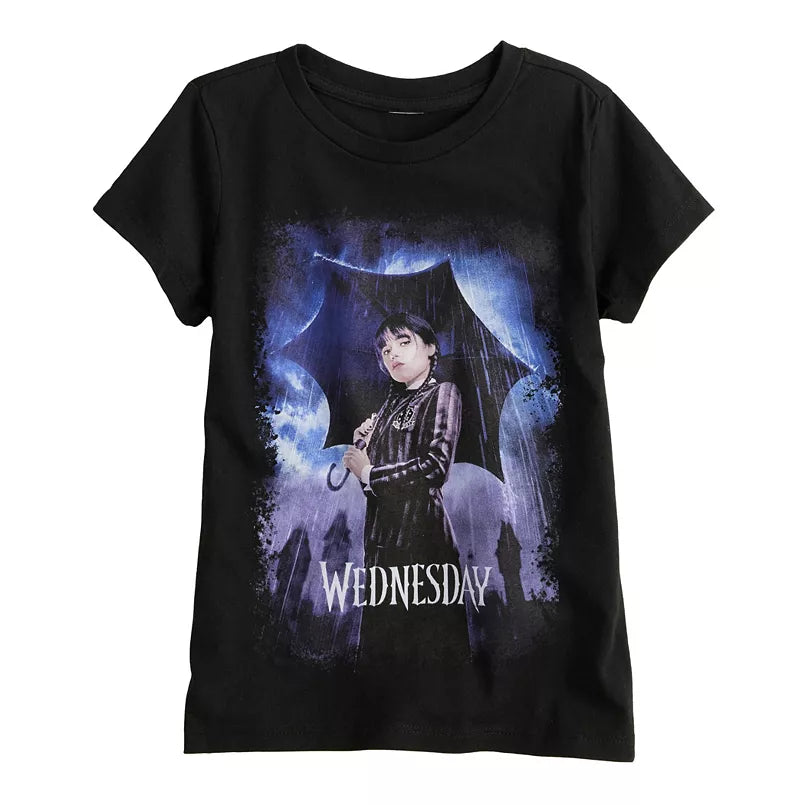 She'll love showing off her favorite franchise with the eye-catching style of this girls' Wednesday Addams graphic tee.
