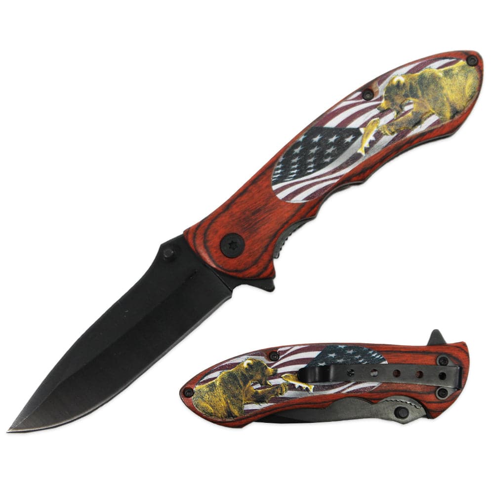 KN 1911-USB 4.5" USA Flag Wildlife Bear Assist-Open Folding Knife with Belt Clip