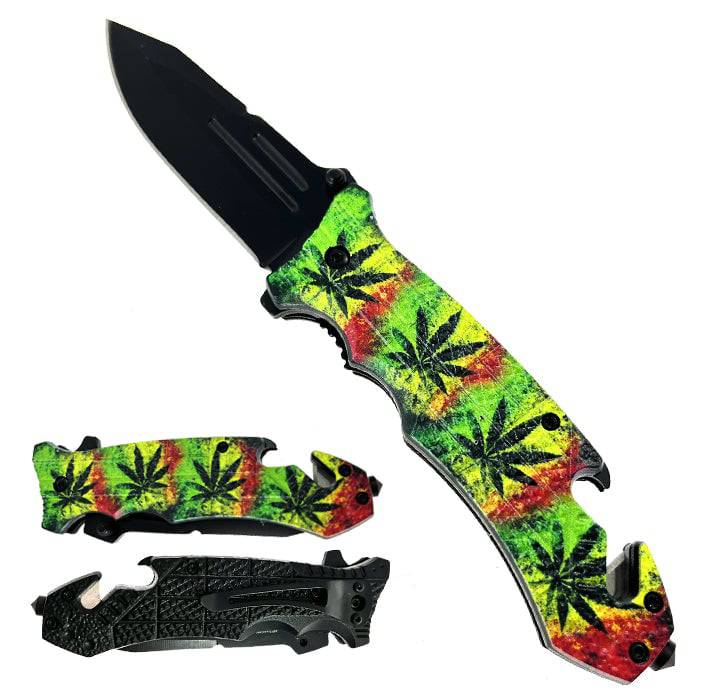 KS 3108-MM1 5" Marijuana Leaf Rasta Folding Tactical Rescue Knife