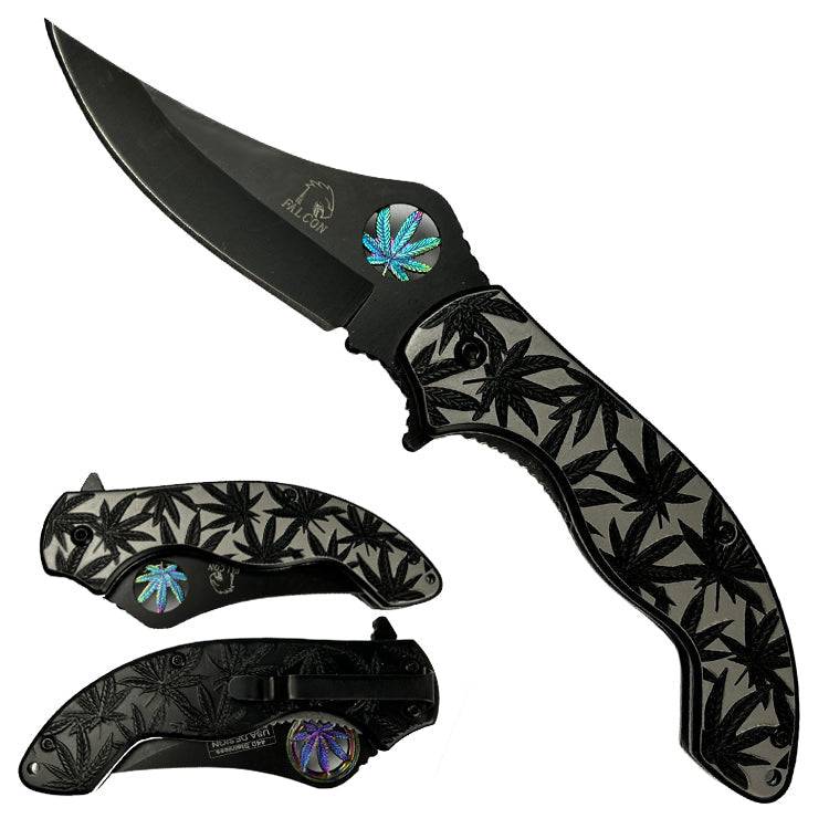 KS 3601-BK 4.25" Black Stainless Steel Assist-Open Marijuana Folding Pocket Knife