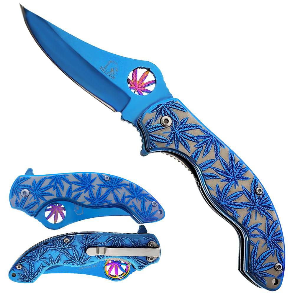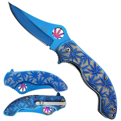 KS 3601-BL 4.25" Blue Stainless Steel Assist-Open Marijuana Folding Pocket Knife