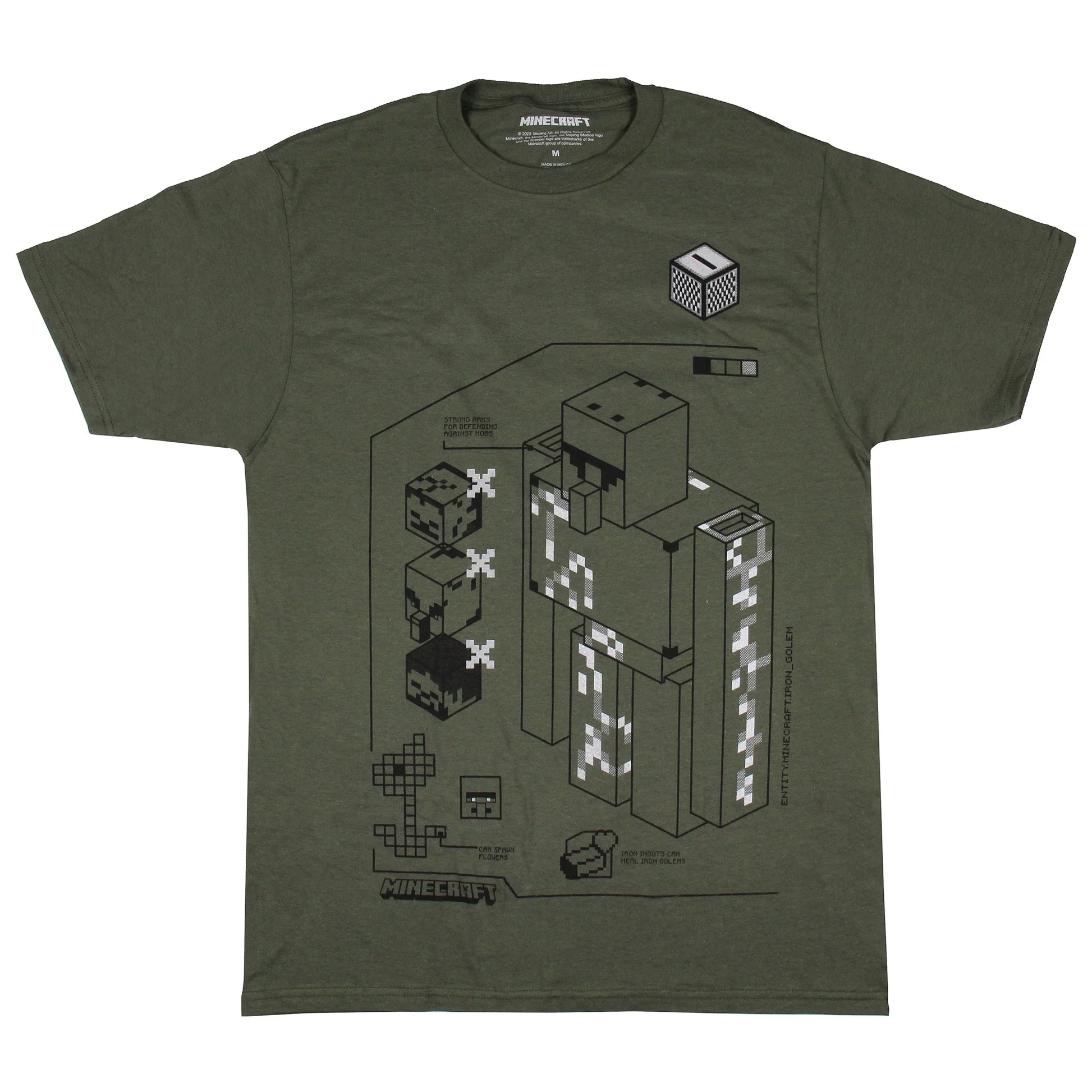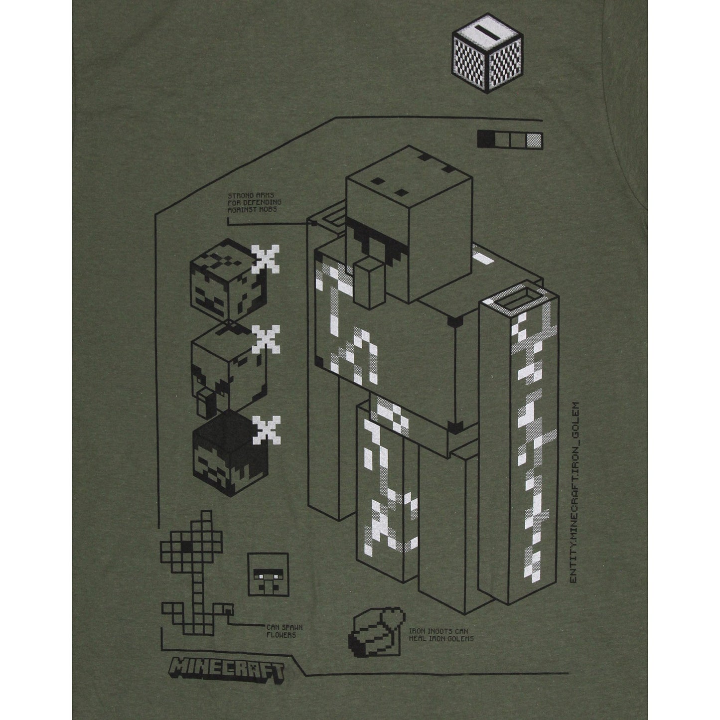 • Great Graphic Design - This olive green t-shirt features a subtle Iron Golum labeled diagram-style graphic on the front. This awesome tee is sure to make you stand out in a crowd, a must-have for any Minecraft enthusiast