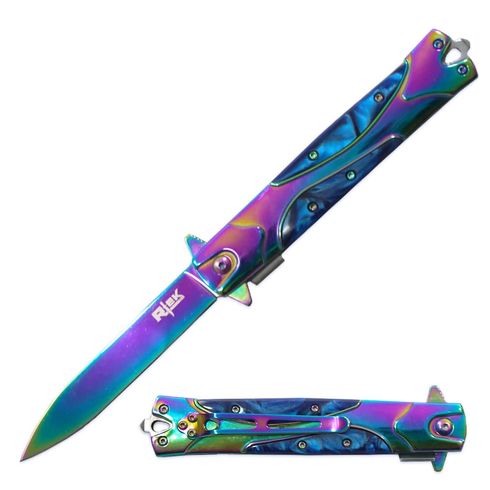RT 5003-BLRB 5" Blue Pearl Handle Titanium Assist-Open Folding Knife with Glass Breaker